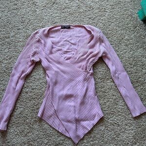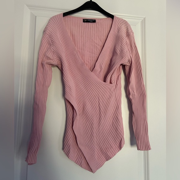 Pink Ribbed Wrap Top