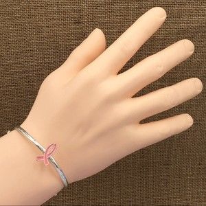 🌼 Pink Ribbon Breast Cancer Silver Stretch Bracelet