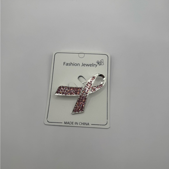 Elegant pink ribbon brooch with sparkling accents. Perfect for adding a touch of charm to any outfit.