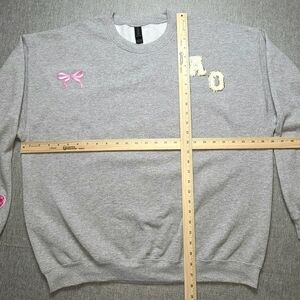 Pink Ribbon Embroidered Patch Gildan Heavy Blend Pullover Sweatshirt Size XL
