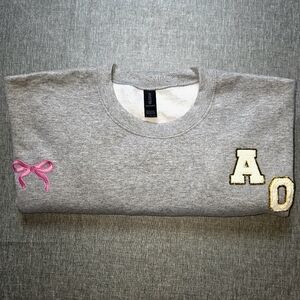 Get this one-of-a-kind, cozy gray crewneck, featuring fun and vibrant custom embroidery patches! Perfect for a unique, casual, and stylish look.