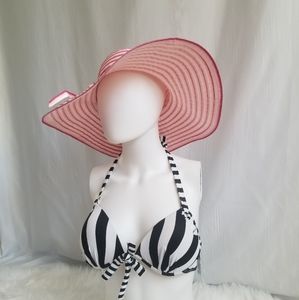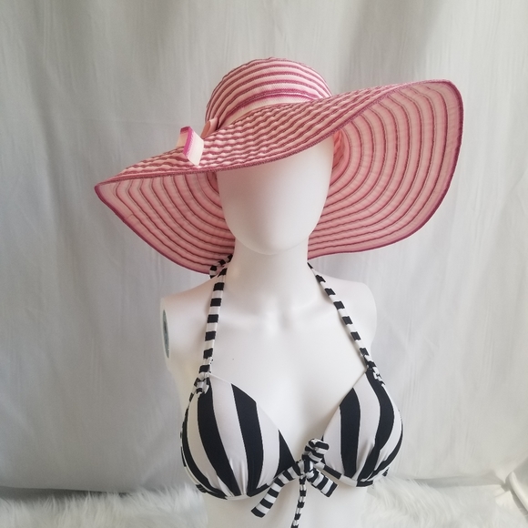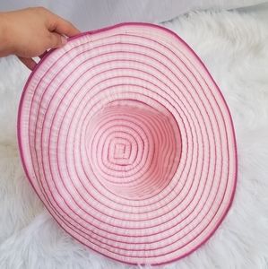 Pink ombre wound ribbon floppy sun hat. Sweet bow detail. Quality made and excellent condition! Please see photos for approximate measurements, please note the tape sags a bit in the bowl of the hat. Please comment with any questions before purchasing!