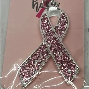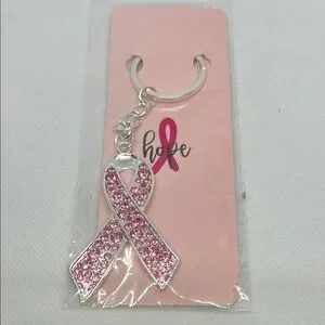 Show your support with this elegant pink ribbon keychain. Perfect for adding a touch of color to your accessories.