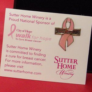 Pink Ribbon Of Hope Is A Wonderful Pin. Show Off your New Sutter Home Pin with Pride and Grace. Here your opportunity to discover the beautiful color Pink on this ribbon. It's Nice, New, And Ready for Wear. Order it Today.