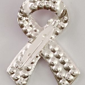 Brand new pink ribbon brooch with silver color polished finish. Never used, clean, mint condition. I've priced this item to sell quickly, so no discounts are available for this item. Measures approximately 1 3/4 inch from top to bottom and across at its bottom width. Message me with any questions. See all of my other items for sale. Thanks for visiting.