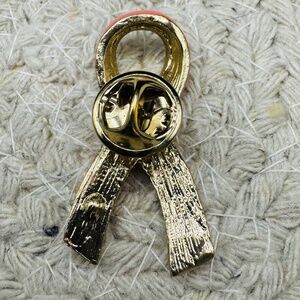 Pink Ribbon With Pink Rhinestone Gold Tone Pin.