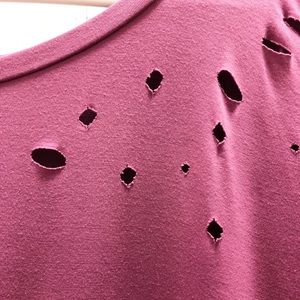 This purple/pink “ripped” shirt is super soft and stretchy. The ripped look makes it more unique. This is perfect with any pair of jeans or leggings.