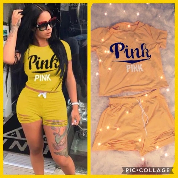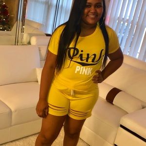 Pink Ripped Shorts Set