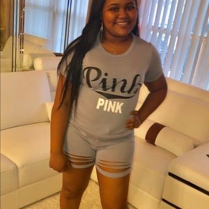 Two piece shorts set with rips. Available in colors: grey small