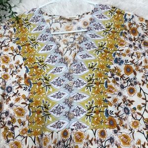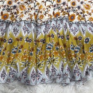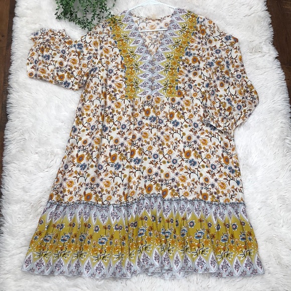 Cream, green, blue, black, and red Pink Ripple dress, size L.