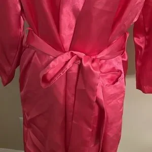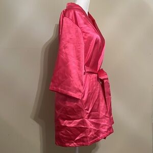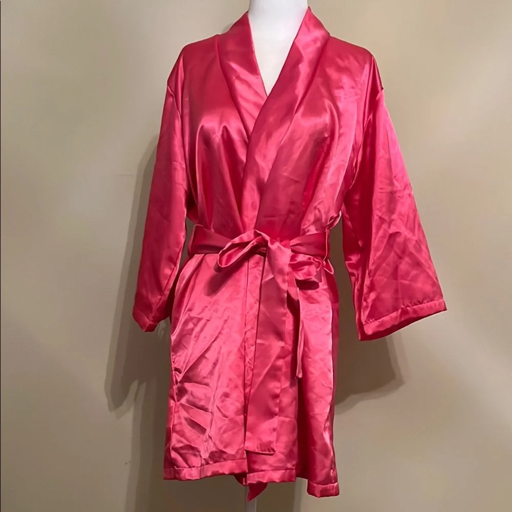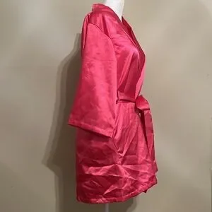 Experience luxury with this elegant hot pink robe. Perfect for lounging or as a stylish cover-up. Enjoy the soft, silky feel against your skin.