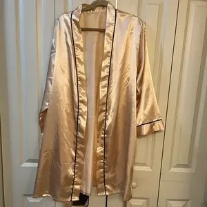 This pink shiny robe is perfect for getting ready! It is a size XL. I do not know the brand and it is not identified on any tags. However, it is in excellent condition, as I only wore it once! Measurements: pit to pit (open) 24 1/2 inches, length - about 38 inches, about 21 3/4 inches. Comes pre washed from a smoke and pet free home. Give it a like or add to a bundle for a discount!