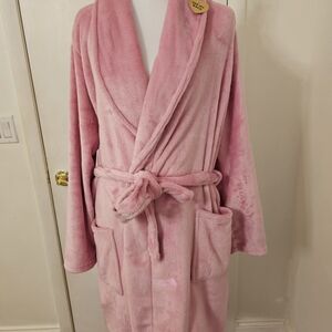 The ultimate Y2K dream! 💋 This authentic Juicy Couture plush robe is for the girls who want to stay iconic while lounging. Featuring an all-over pink heart print on a cloud-white fleece, it’s giving major "it girl" energy.
