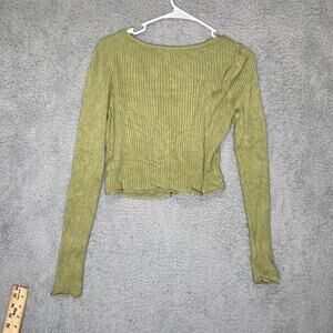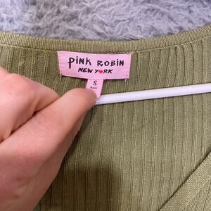 Pink Robin womens S green cropped cardagain Y2K pearl buttons ribbed stretch