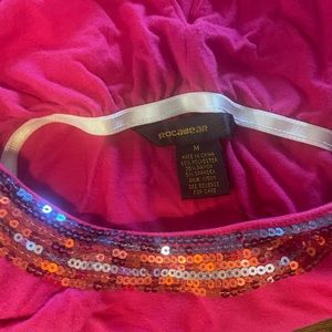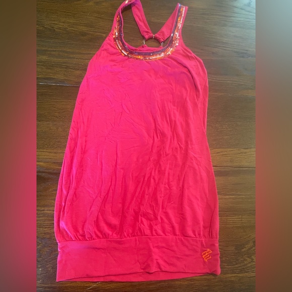 Pink Rocawear top. Neckline embellished with sequins. Built in bra. Depending on height/torso could be worn as a mini-dress.