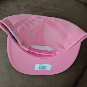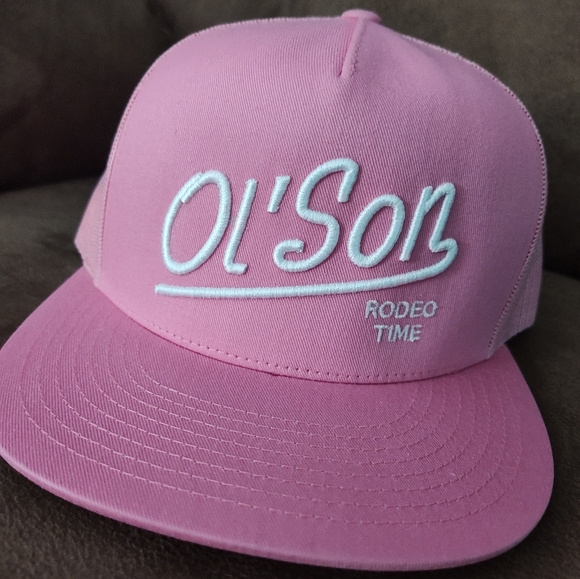 pink trucker hat with embroidered "Rodeo Time" detail. Lightweight mesh back and structured front for a classic fit. Stylish pink color adds a playful touch to casual outfits.