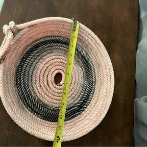 Charming pink rope basket with a decorative knot.