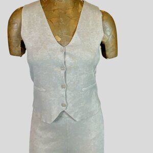 Description: NWT 2-Piece Vest/Pants Loungewear/Casual Knit Set, Shell/mother-of-pearl buttons on the vest top and V-Neck. Pull-on Straight/Wide Leg Pants. A few tiny snags/pulls as show in photos.