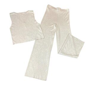 Pink Rose 2-Piece Vest/Pants Loungewear Knit Set Sz M Light Beige #107K