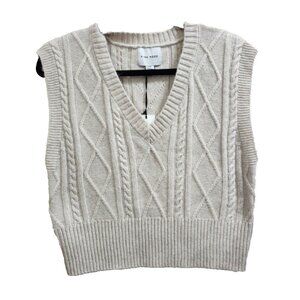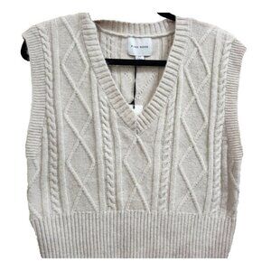 Pink Rose Beige Cable Knit Sweater Vest Women’s S V-Neck Sleeveless Diamond