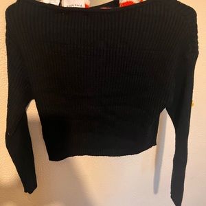 Stylish black ribbed sweater by Pink Rose. Perfect for any occasion.
