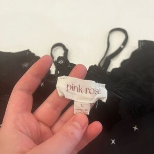 Pink Rose Black Star Print Satin Silky Lace Trim Cami Crop Top Large