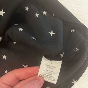 - Black silky material with white stars