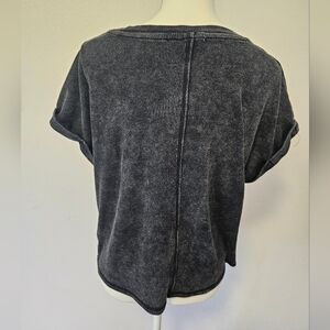 Gently used, Distressed Look black Ribbed with rolled sleeves tee. Great casual top for any season.