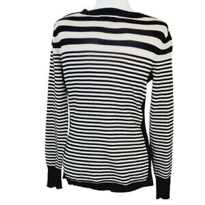 Pink Rose Black and White Stripe V-Neck Pullover Sweater Size Large.