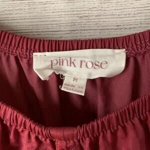 Pink Rose Blouse Dusty Rose Color Button Tie String Detail Long Sleeve Size M