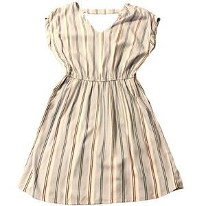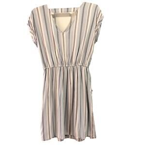 Pink Rose Blue Hydra Stripe Blouson Mini Dress Medium Spring Pastel Bar Back NWT