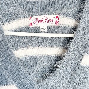 🟢Pink Rose Blue & White Fuzzy V Neck Sweater S