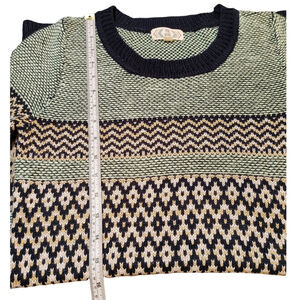 Pink Rose Bodycon Mini Sweater Dress 3/4 Sleeve Fairisle Striped Green Womens S