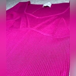 Pink Rose Bodysuit Sweater Long Sleeve V-Neck Hot Pink Fuchsia