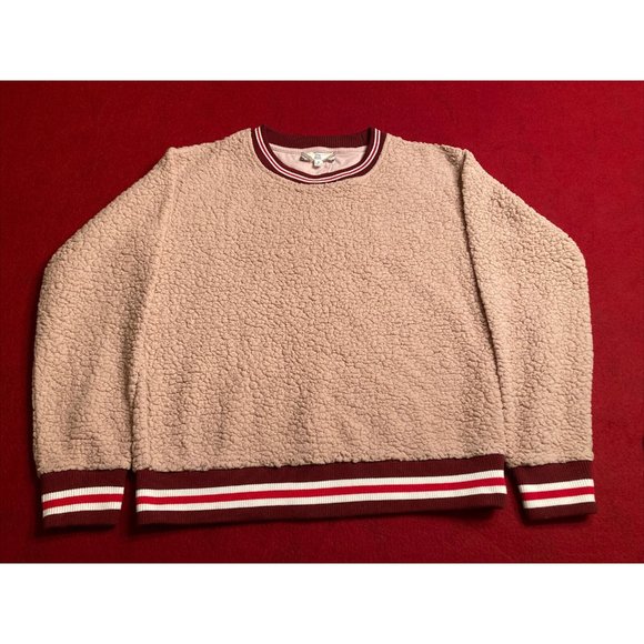 Pink Rose Brand Polyester Fleece Pullover Tan Sweater Size Medium