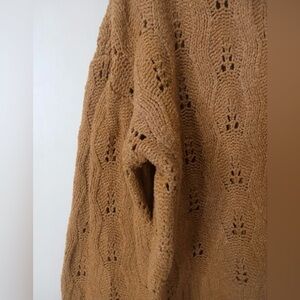 Pink Rose Camel Brown Open Knit Collared Cropped Sweater - Size M