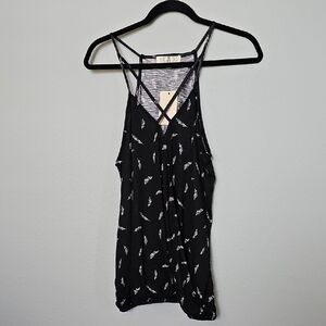 Pink Rose Casual Romantic Black Feather Pattern Camisole NWT Large