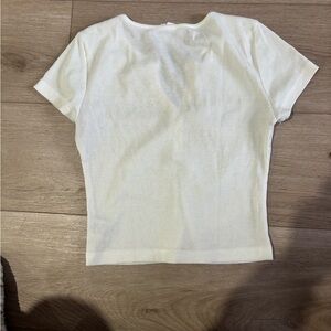 Stylish cream ribbed tee with button-up front. Short sleeves for a casual look. Perfect for everyday wear.