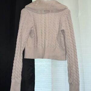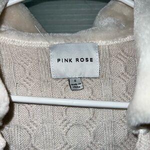 Pink Rose Cream Cable Knit Cardigan Cropped with Faux Fur Collar Size Small