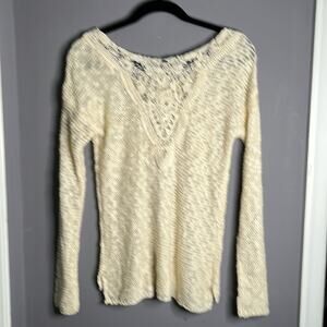 Pink Rose Cream Color Long Sleeve Open Knit Sweater Size Small