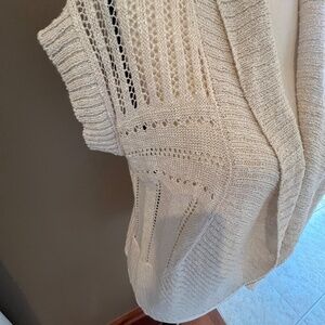 Pink Rose Cream Knit Open Cardigan, Lightweight, Short Sleeve, Size Large