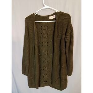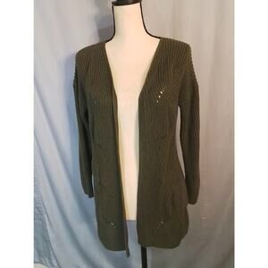 Pink Rose; Dark green sweater with nice X's down back. 3/4" length sleeve and 4" side slits.