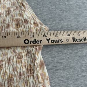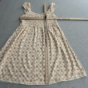 Pink Rose Dress Womens Large Beige White Boho Sleeveless Smocked Rayon Floral Lace