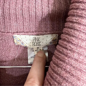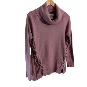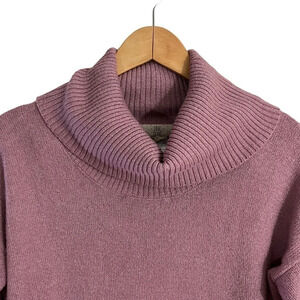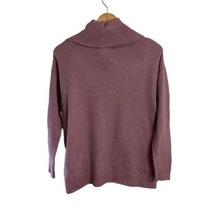 Pink Rose Dusty Purple Turtleneck Sweater Large Ribbed Trim Tight Knit Slit Side