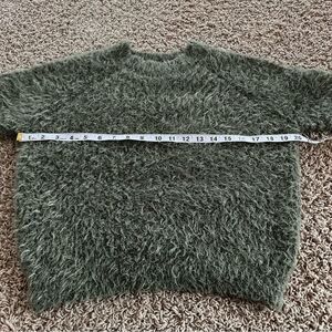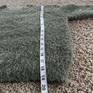 Pink Rose Eyelash Crew Neck Olive Green Long Sleeve Soft Cozycore Sweater SZ XS