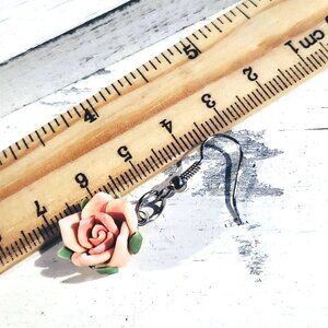 Pink Rose Flower Bead Handcrafted Fimo Polymer Clay Dangle Earrings