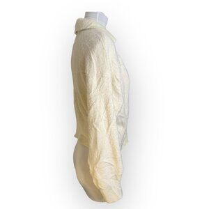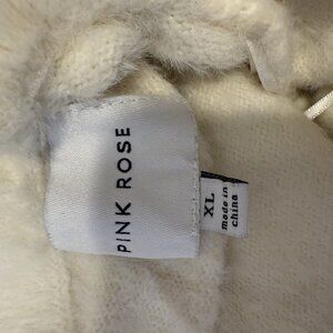Size XL Pink Rose fuzzy knit collared button up sweater in a cream, off-white color