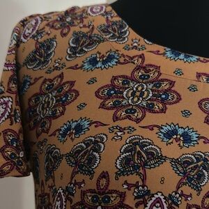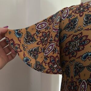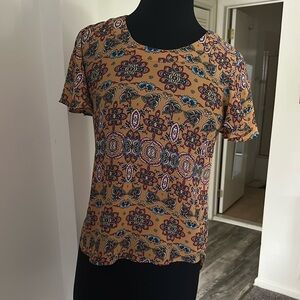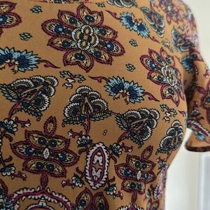 golden yellow ish color with floral short sleeve blouses no stretch. size smal