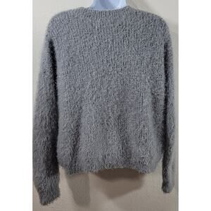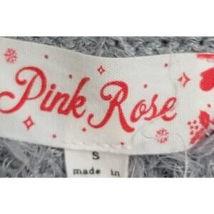 Pink Rose Gray Fuzzy V Neck Drop Shoulder Sweater Small Lightweight Soft Stretch