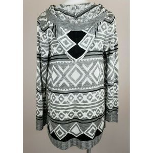 Pink Rose Gray Hooded Sweater Cardigan XL EUC